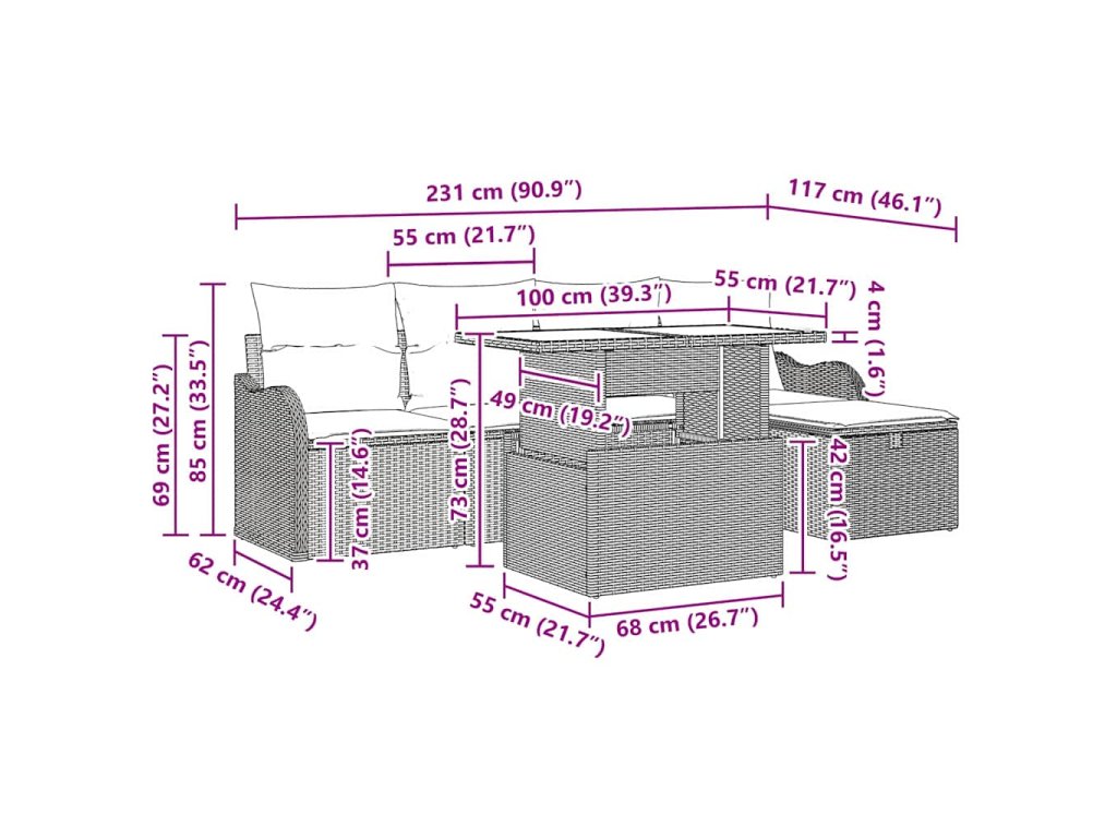 Tato modulární zahradní pohovková souprava spojuje styl a funkčnost, ideálně se hodí do moderních venkovních prostor. Její elegantní obdélníková forma funguje jako ústřední bod setkání venku a přináší únik od každodenních starostí.