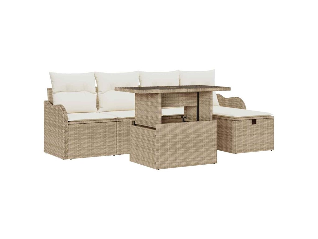 Sada zahradních pohovek s polštářem 6 pcs Béžová Poly ratan