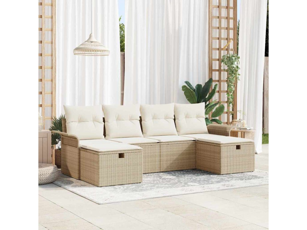 Sada zahradních pohovek s polštářem 6 pcs Béžová Poly ratan