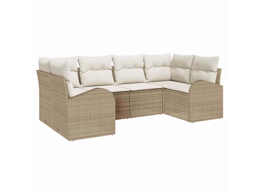 Sada zahradních pohovek s polštářem 6 pcs Béžová Poly ratan