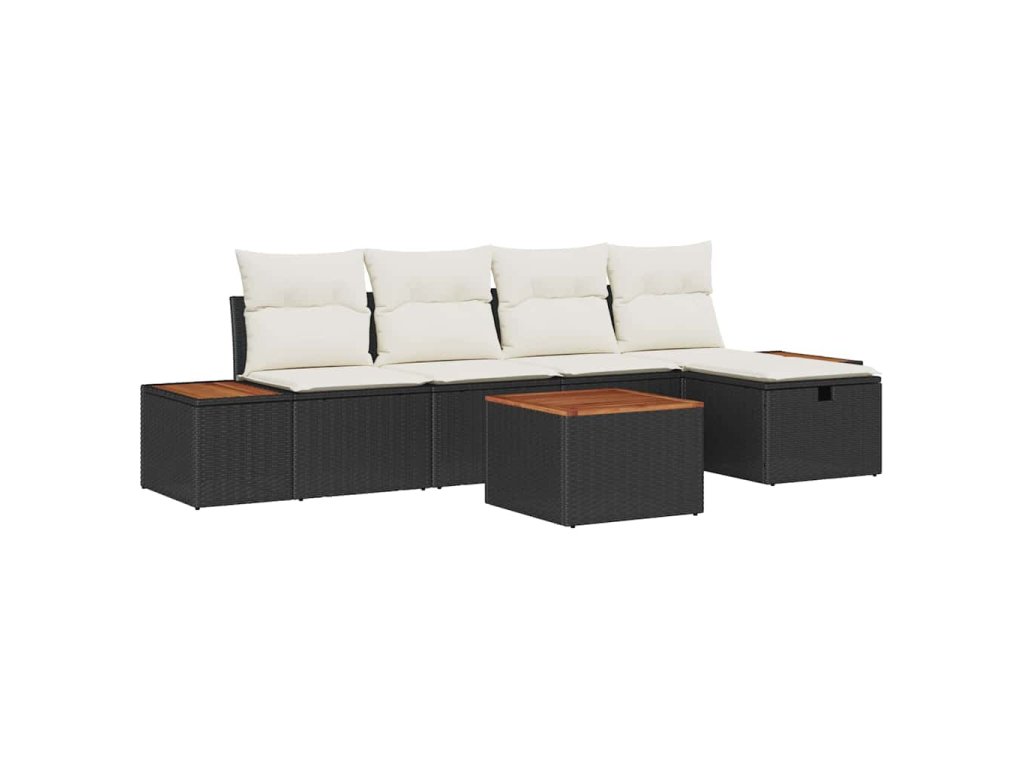 Sada zahradních pohovek s polštářem 6 pcs Černá Poly ratan