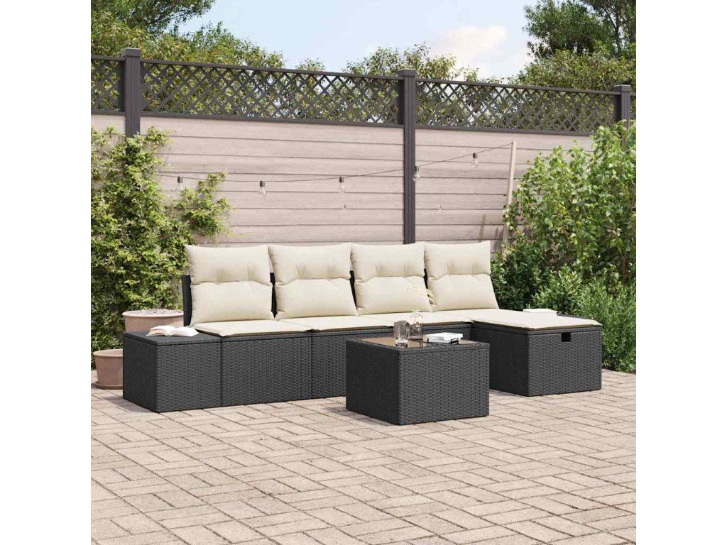 Sada zahradních pohovek s polštářem 6 pcs Černá polyratan