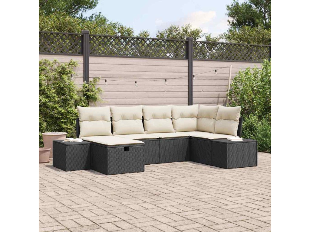 Sada zahradních pohovek s polštářem 6 pcs Černá polyratan
