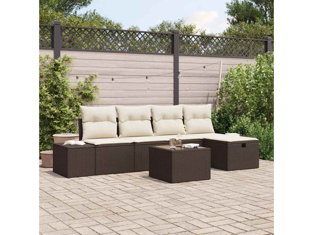 Sada zahradních pohovek s polštářem 6 pcs Hnědá polyratan