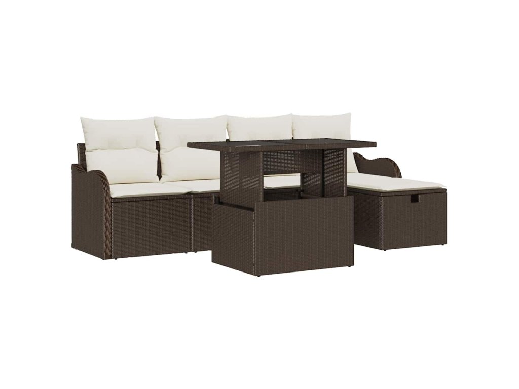 Sada zahradních pohovek s polštářem 6 pcs Hnědá Poly ratan