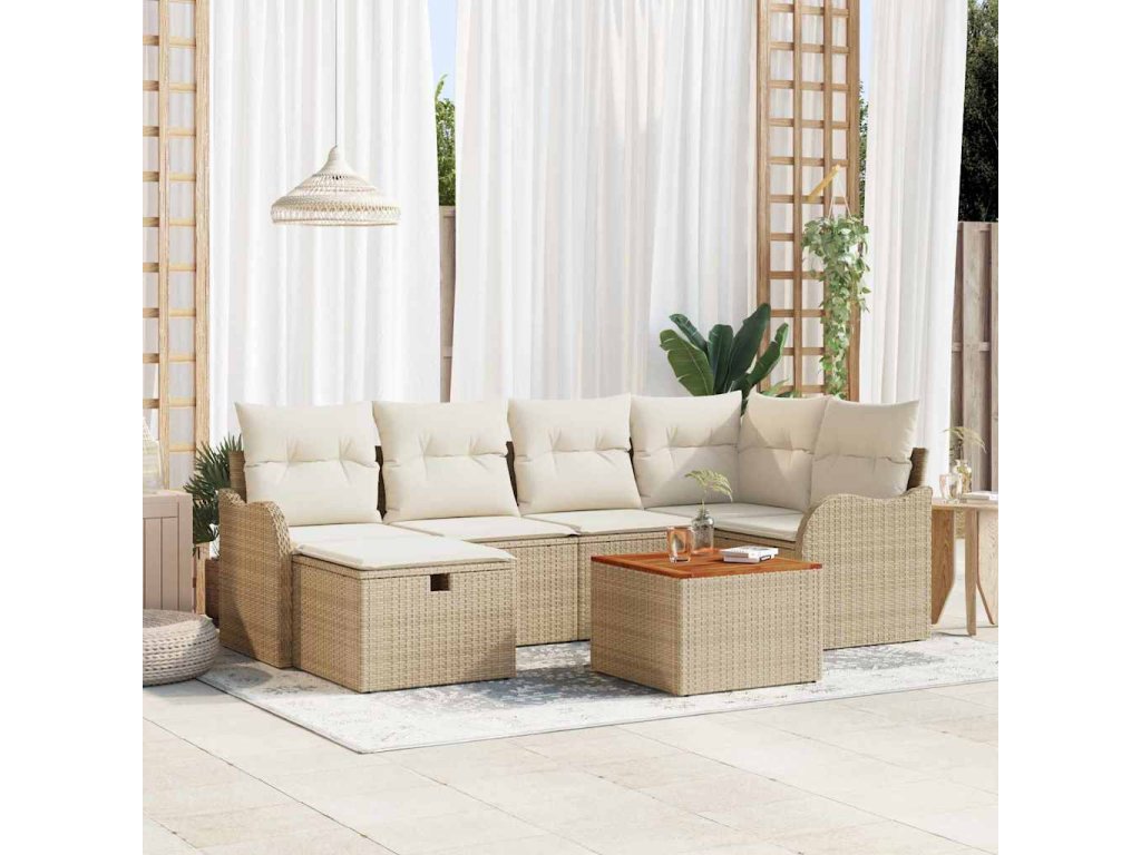 Sada zahradních pohovek s polštářem 7 pcs Béžová Poly ratan