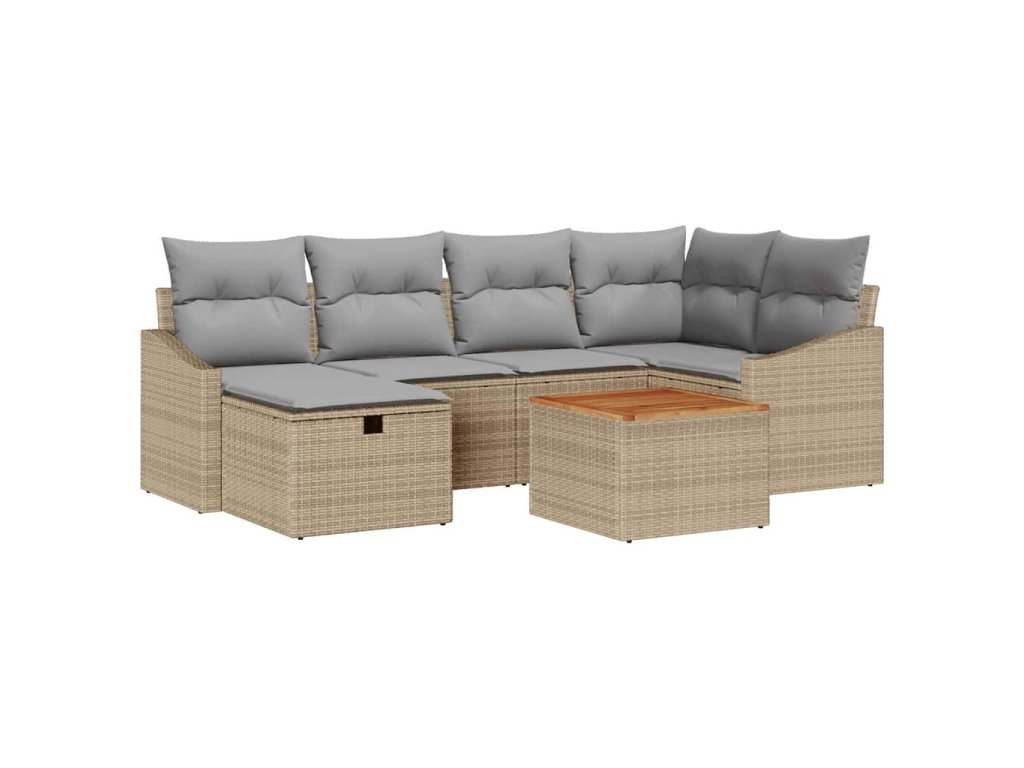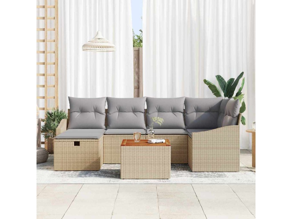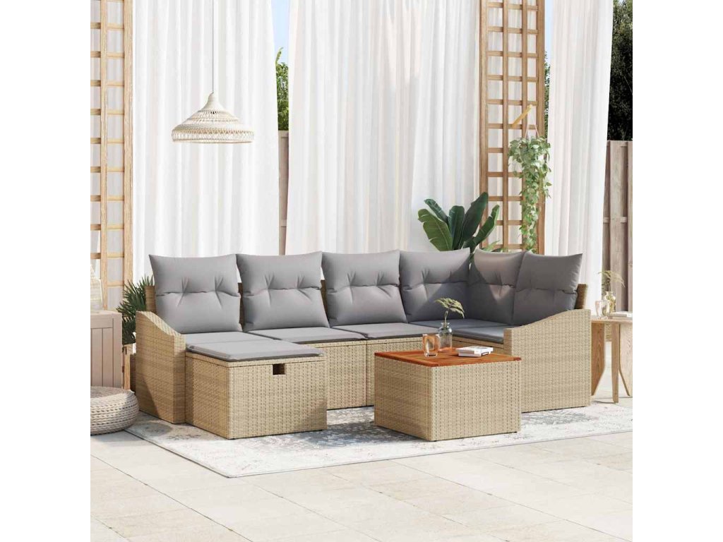 Sada zahradních pohovek s polštářem 7 pcs Béžová Poly ratan