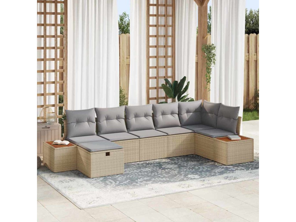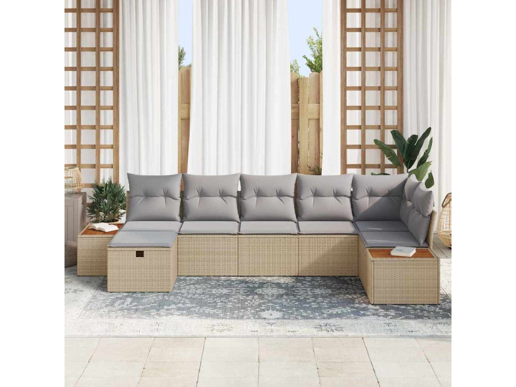 Sada zahradních pohovek s polštářem Béžová polyratan