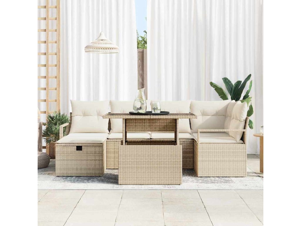 Sada zahradních pohovek s polštářem 7 pcs Béžová Poly ratan