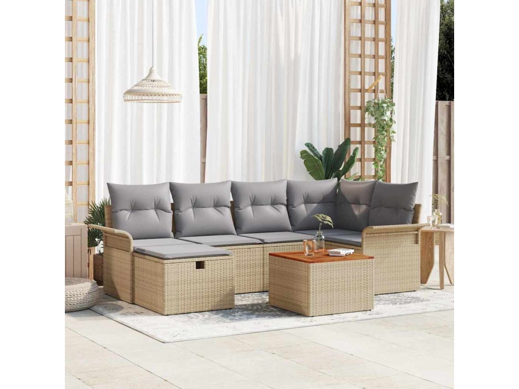 Sada zahradních pohovek s polštářem 7 pcs Béžová Poly ratan