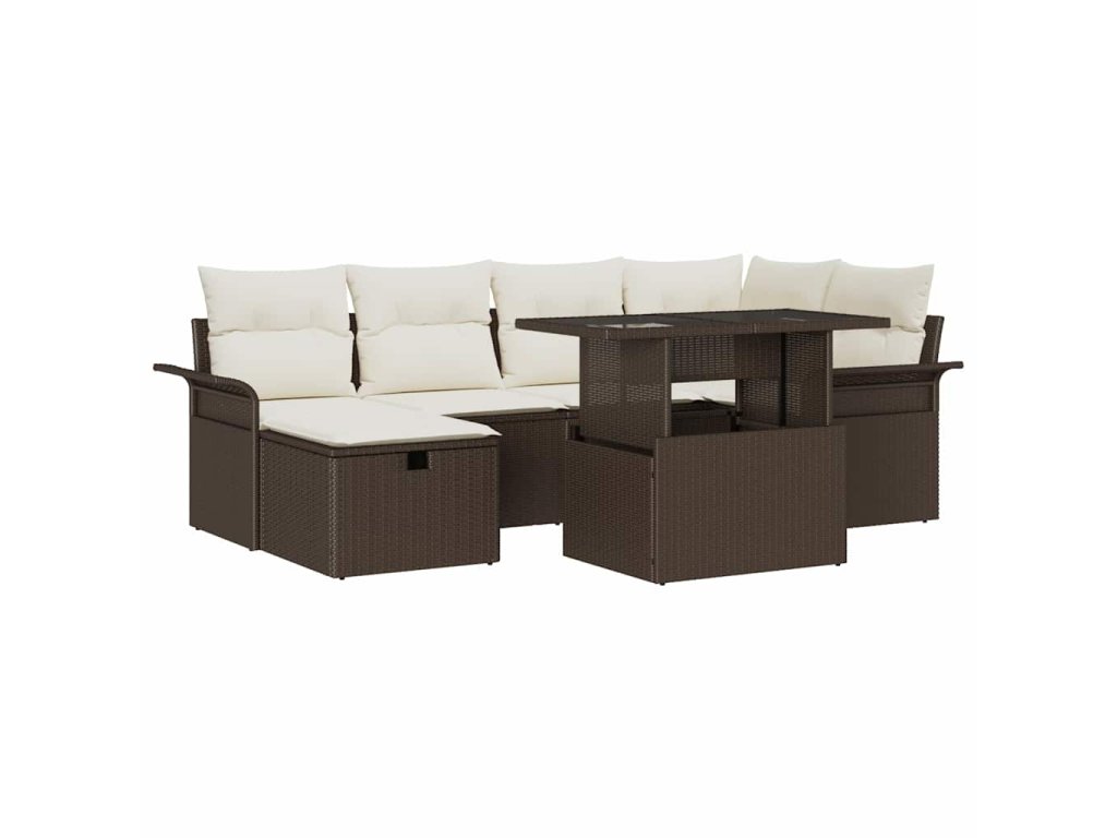 Sada zahradních pohovek s polštářem 7 pcs Hnědá Poly ratan