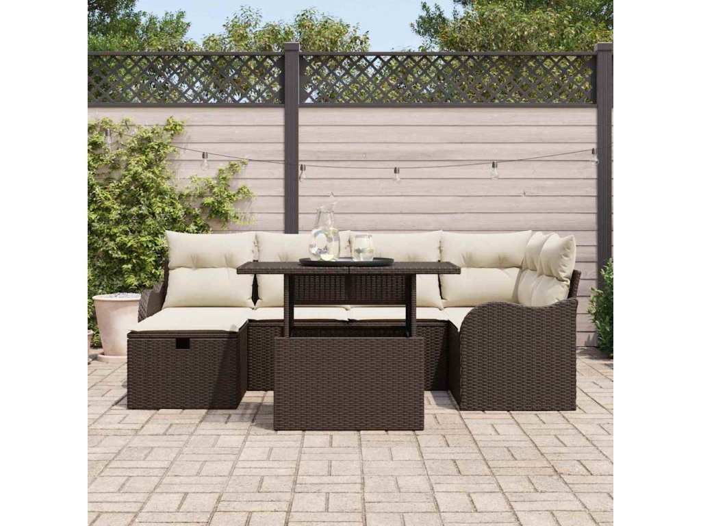 Sada zahradních pohovek s polštářem 7 pcs Hnědá Poly ratan