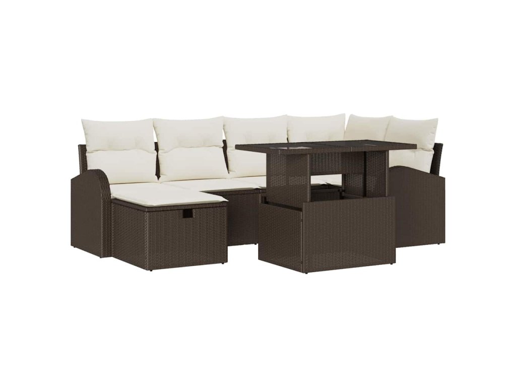 Sada zahradních pohovek s polštářem 7 pcs Hnědá Poly ratan