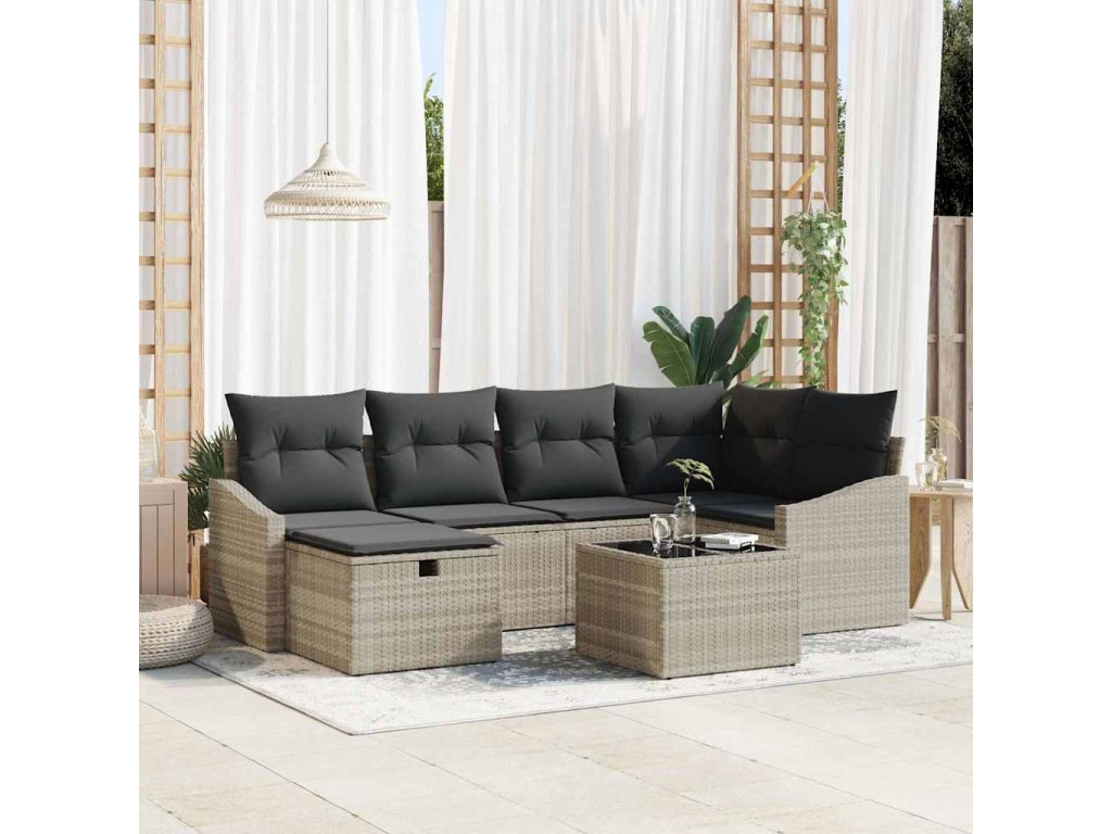 Set pohovek s polštářem 7 pcs Světlá šedá a šedá polyratan