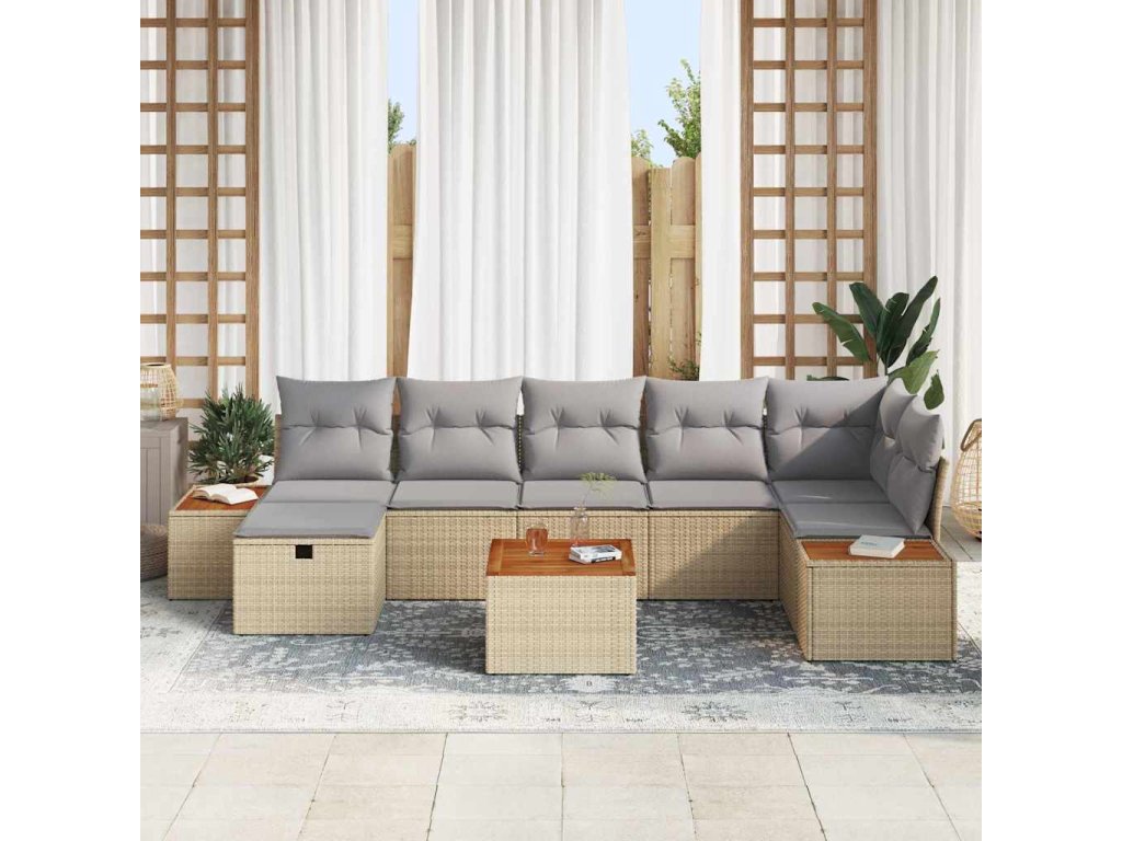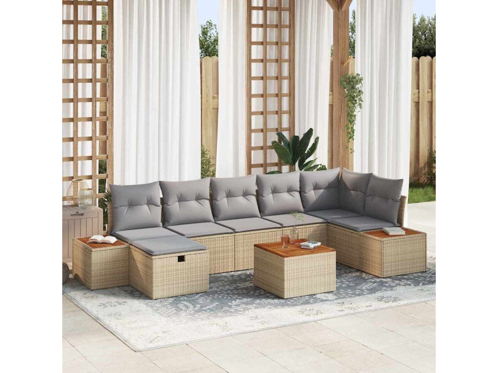 Sada zahradních pohovek s polštářem 8 pcs Béžová polyratan