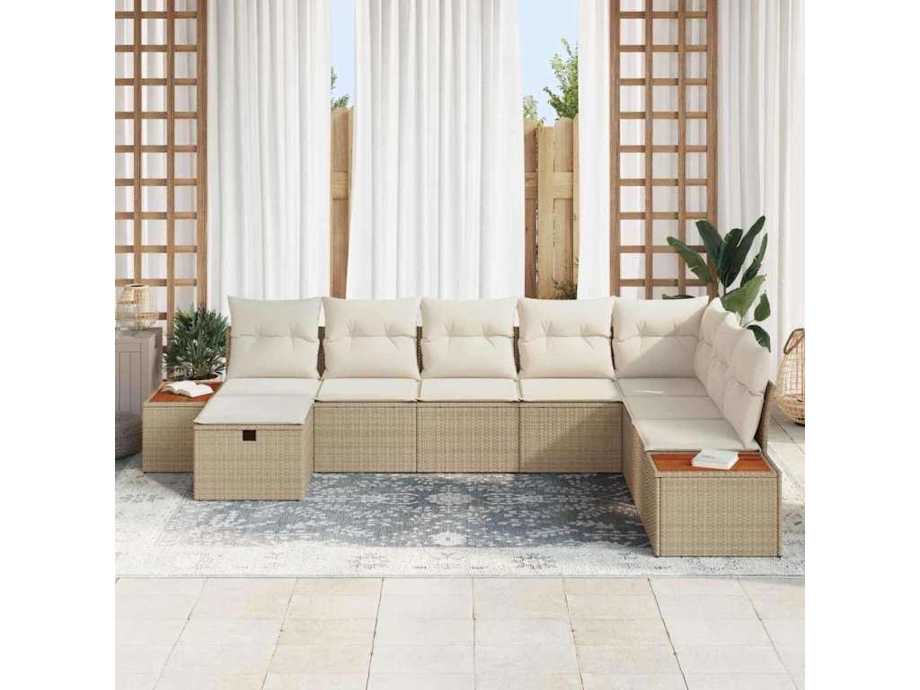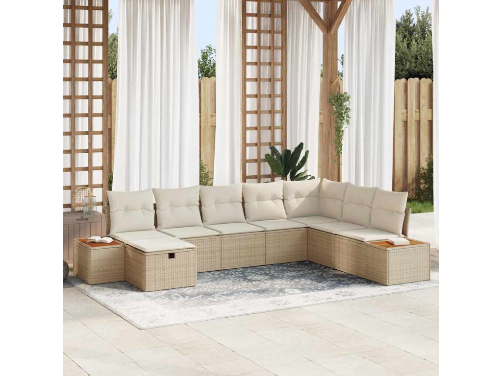 Sada zahradních pohovek s polštářem 8 pcs Béžová Poly ratan
