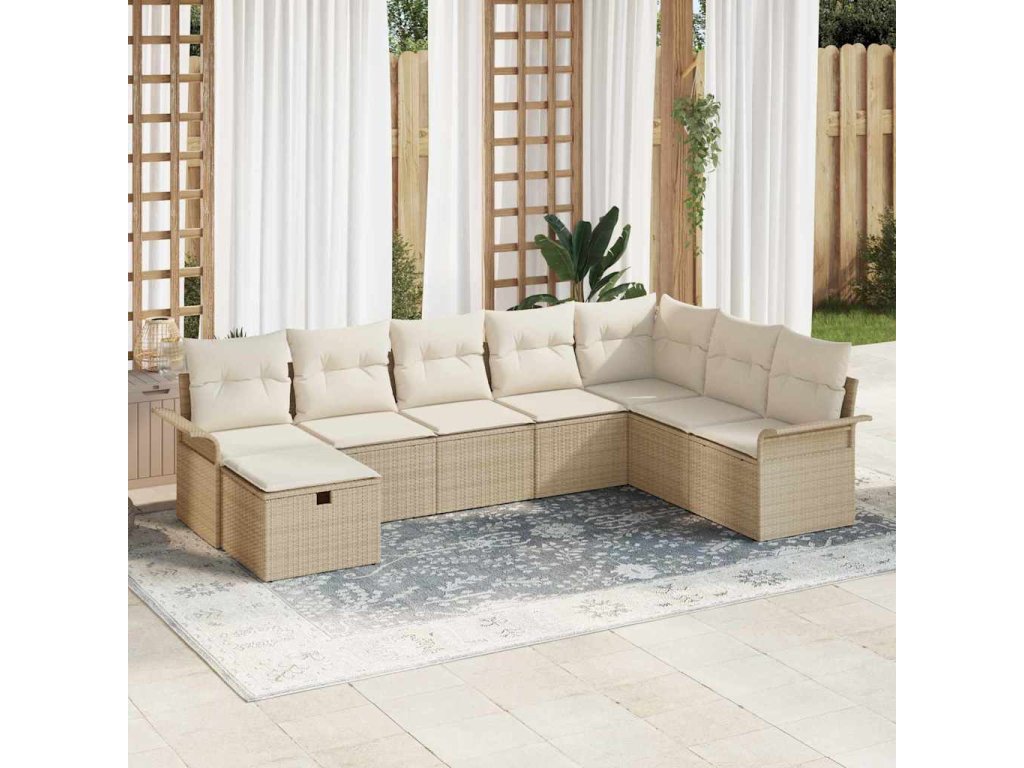 Sada zahradních pohovek s polštářem 8 pcs Béžová Poly ratan