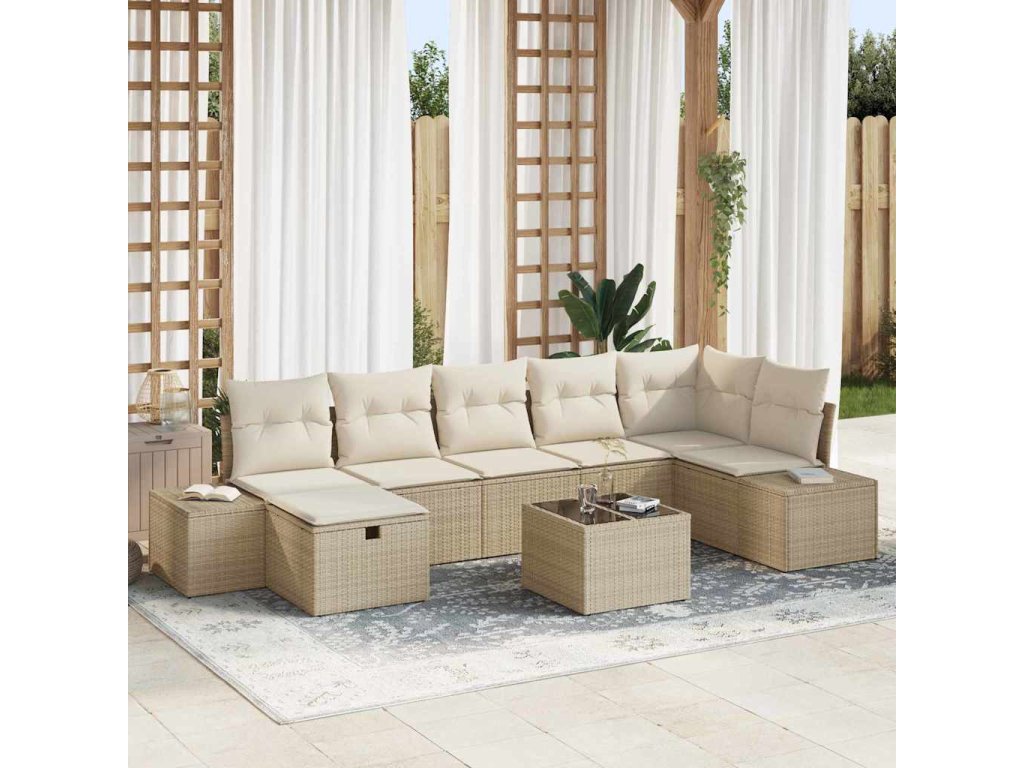 Sada zahradních pohovek s polštářem 8 pcs Béžová polyratan
