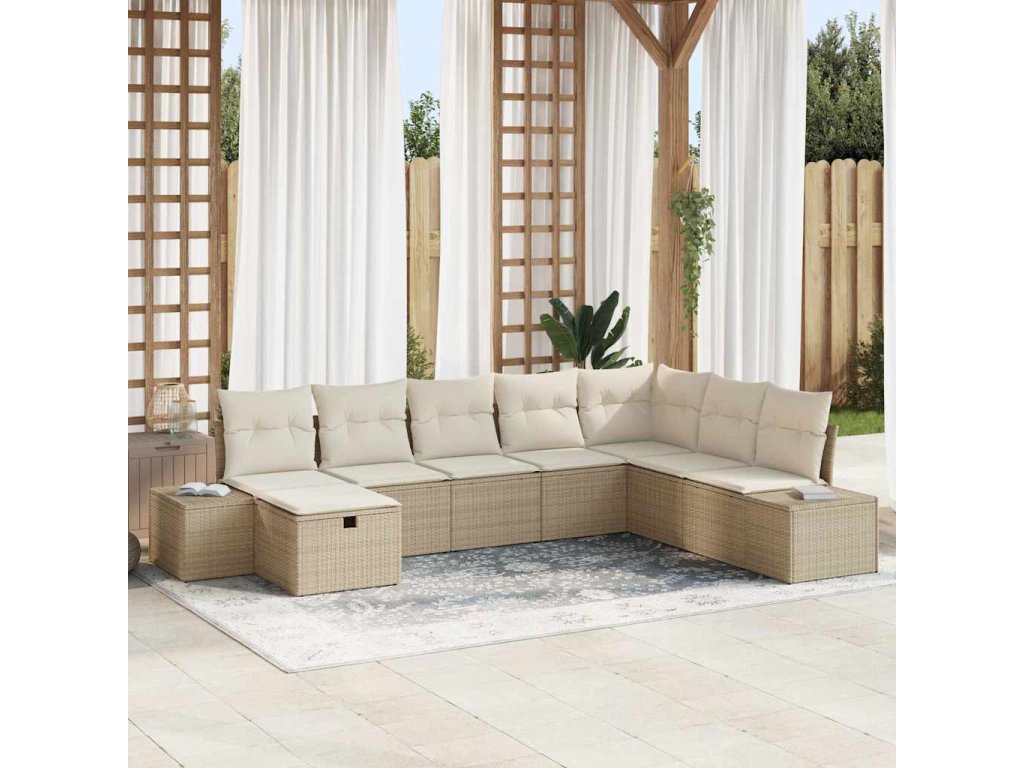 Sada zahradních pohovek s polštářem 8 pcs Béžová polyratan