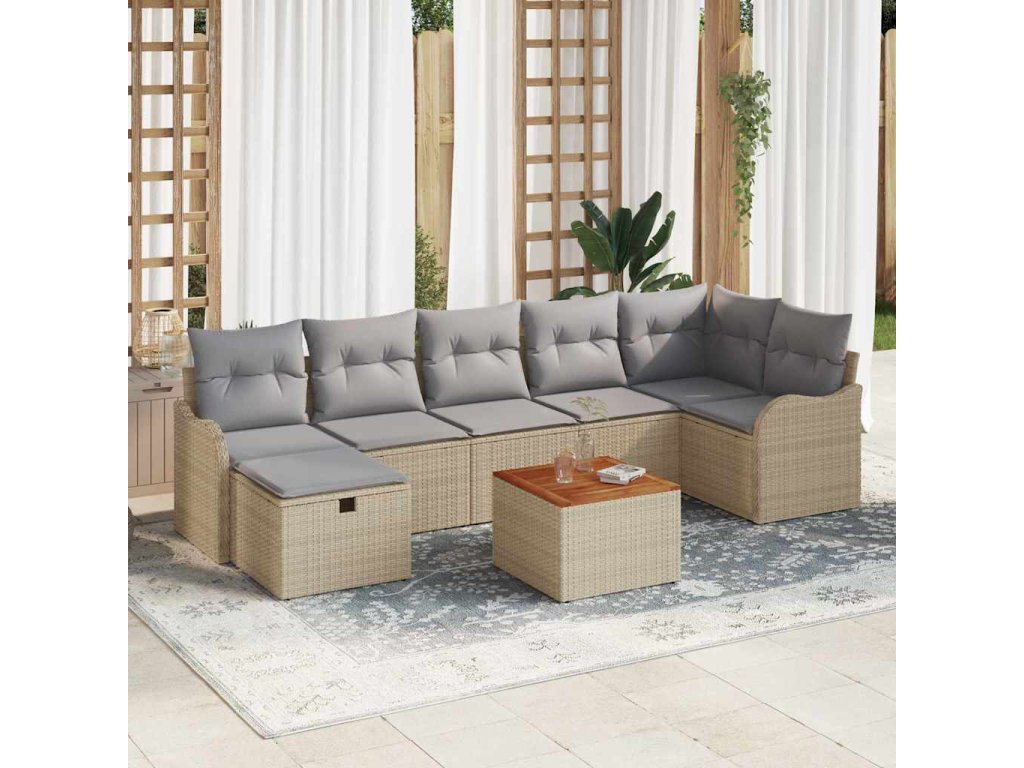 Sada zahradních pohovek s polštářem 8 pcs Béžová Poly ratan