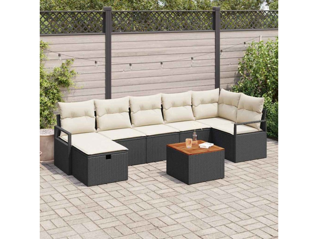 Sada zahradních pohovek s polštářem 8 pcs Černá Poly ratan