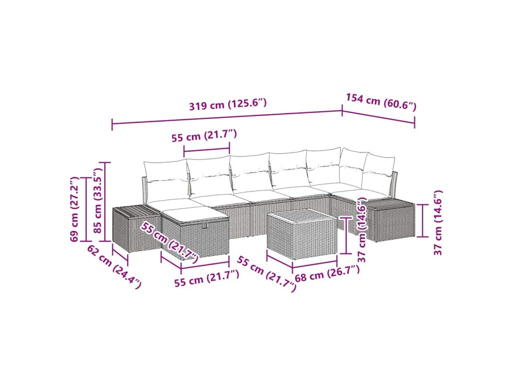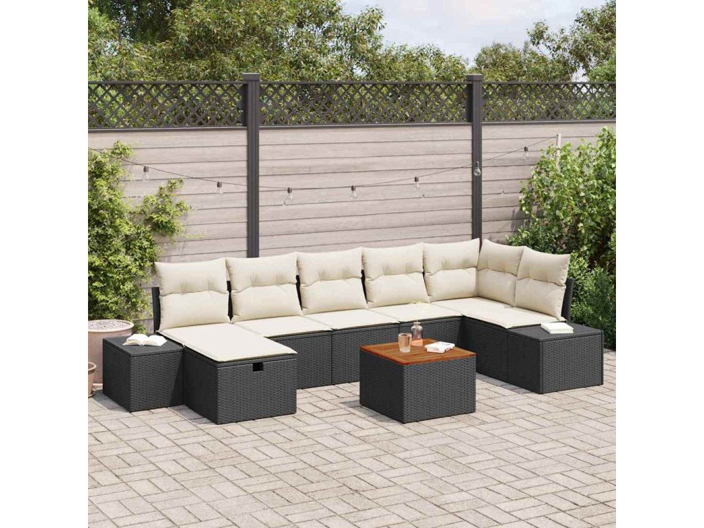 Sada zahradních pohovek s polštářem 8 pcs Černá Poly ratan