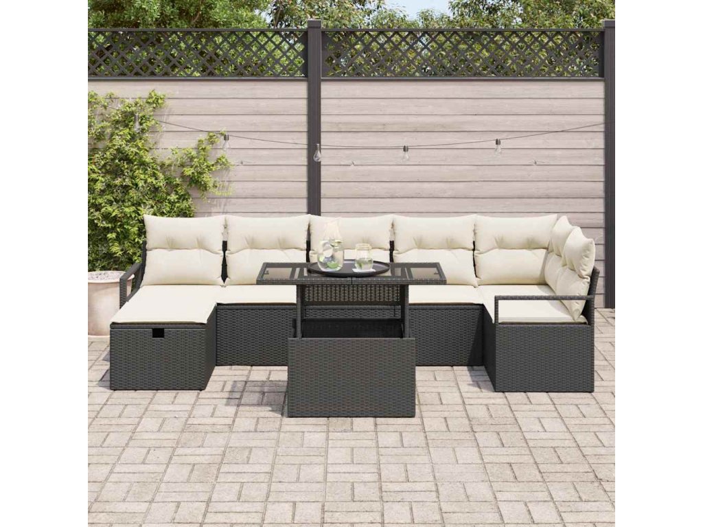 Sada zahradních pohovek s polštářem 8 pcs Černá Poly ratan