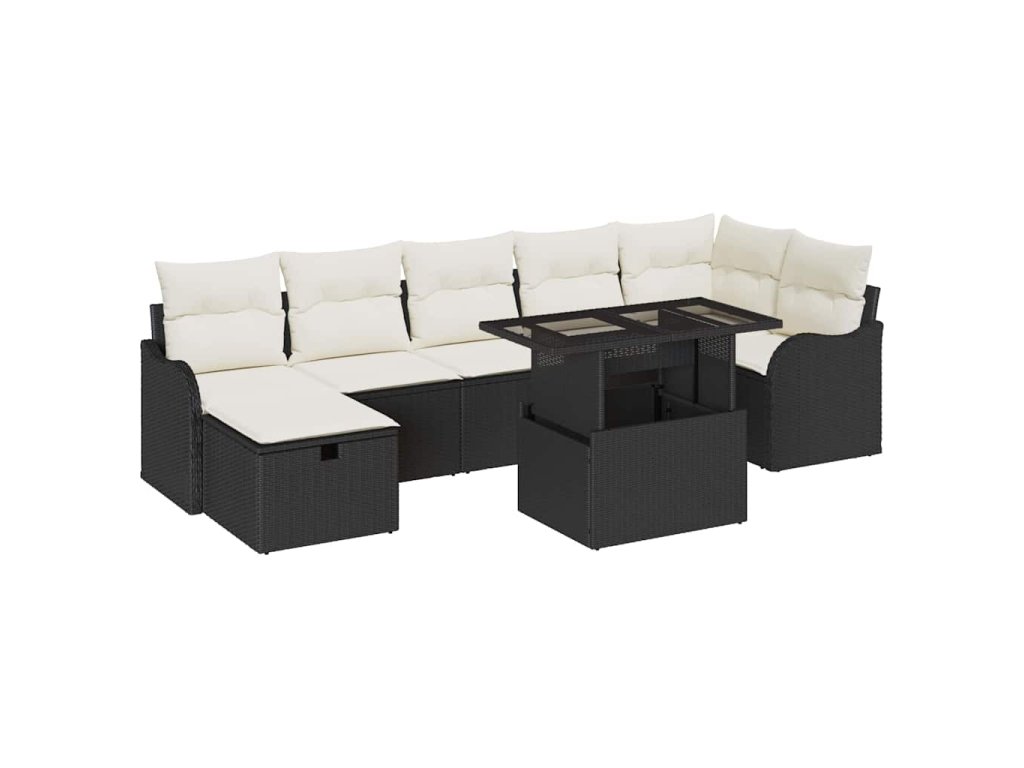 Sada zahradních pohovek s polštářem 8 pcs Černá Poly ratan