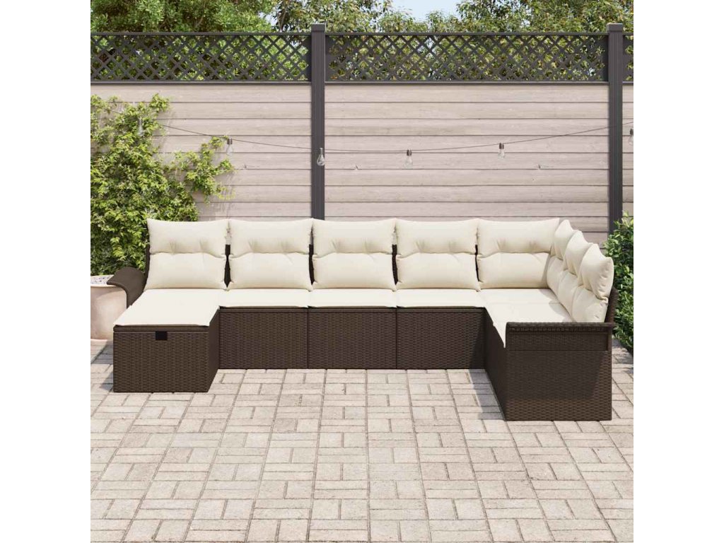 Sada zahradních pohovek s polštářem 8 pcs Hnědá Poly ratan