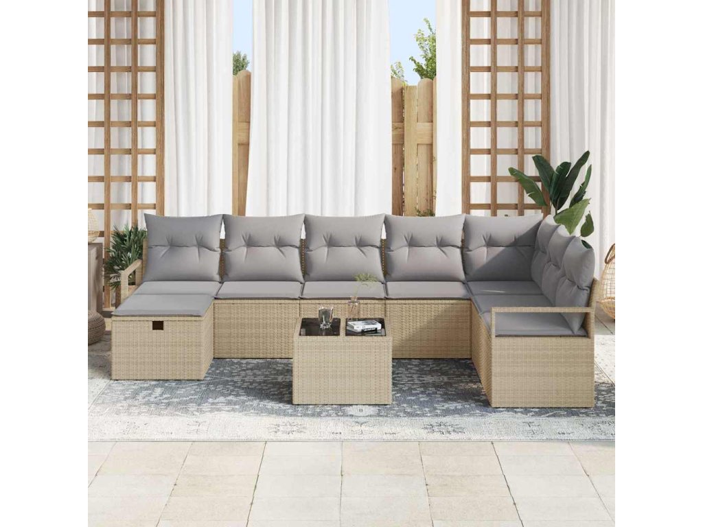 Sada zahradních pohovek s polštářem 9 pcs béžová a světle šedá
