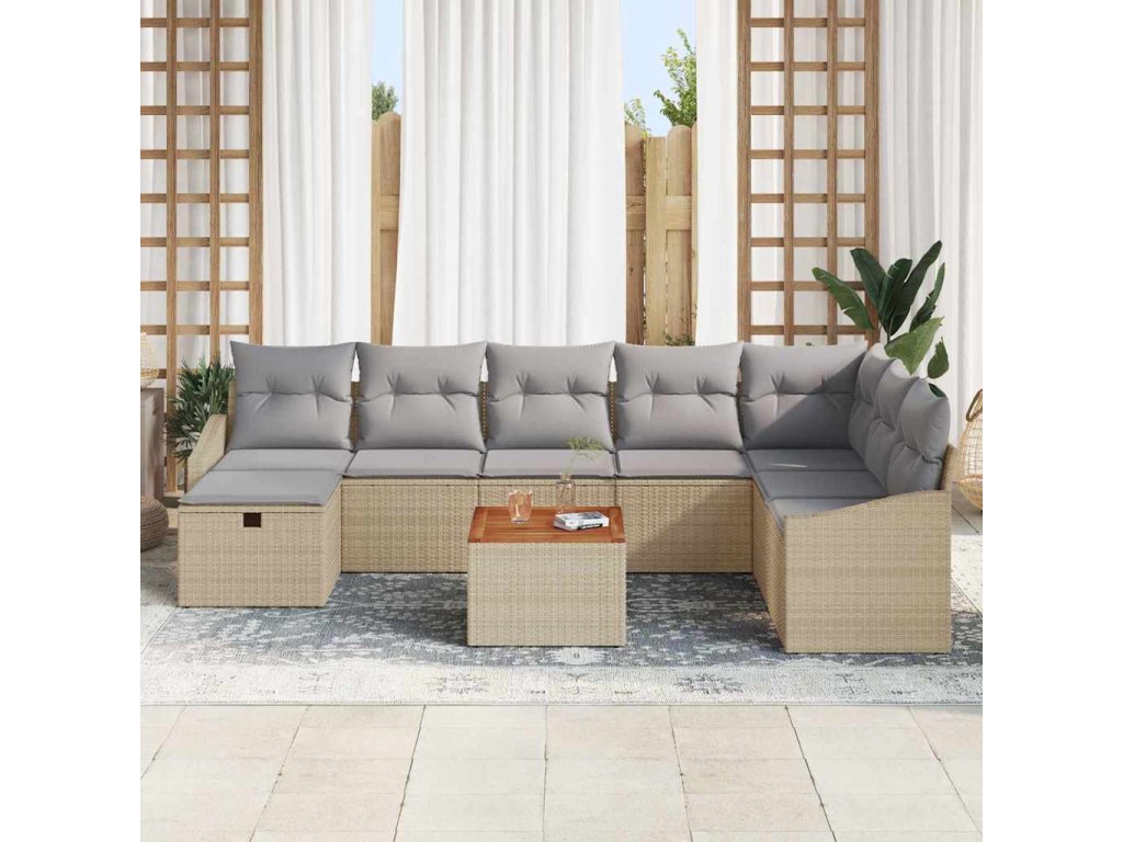 Sada zahradních pohovek s polštářem 9 pcs Béžová Poly ratan