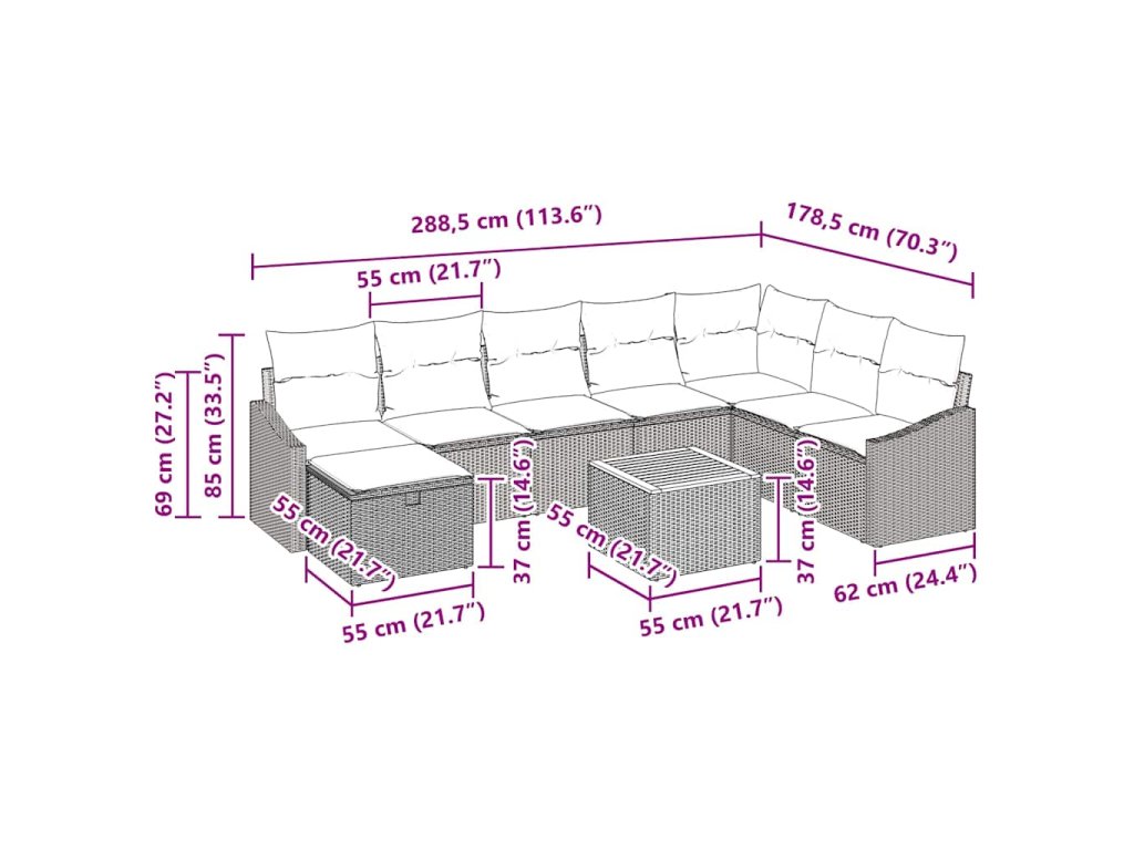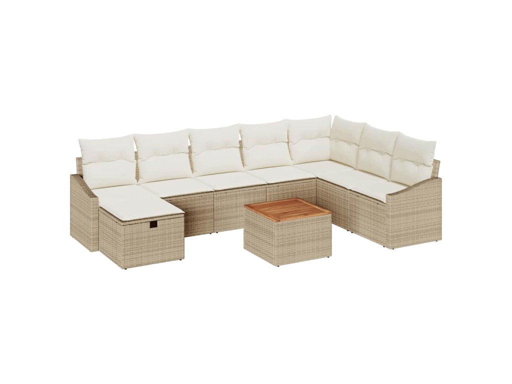 Sada zahradních pohovek s polštářem 9 pcs Béžová Poly ratan