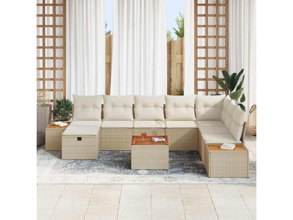 Sada zahradních pohovek s polštářem 9 pcs Béžová Poly ratan