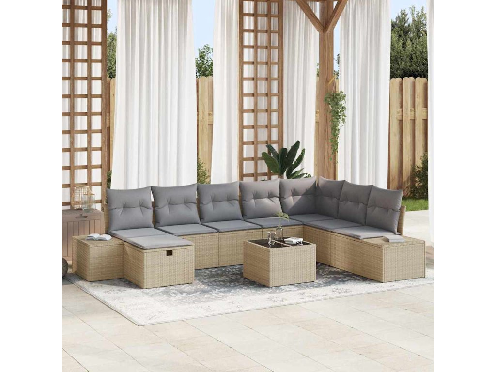 Sada zahradních pohovek s polštářem 9 pcs Béžová polyratan