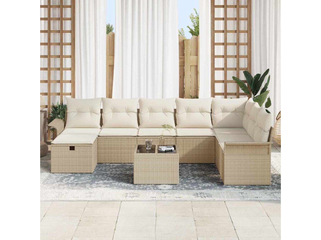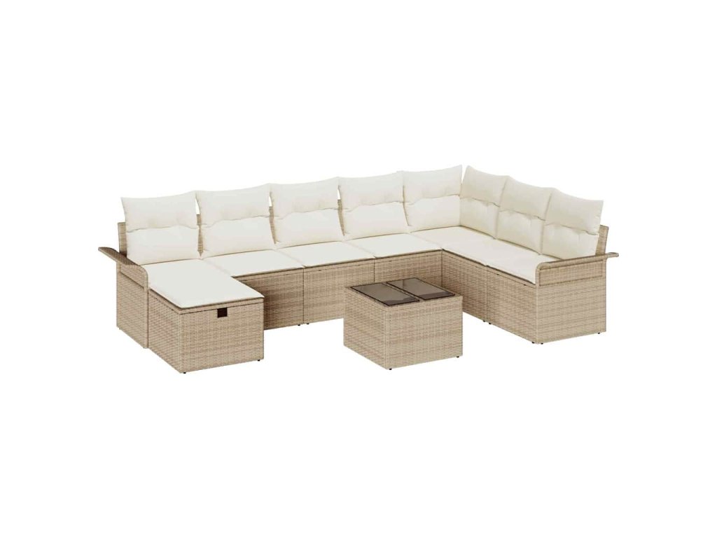 Sada zahradních pohovek s polštářem 9 pcs Béžová Poly ratan