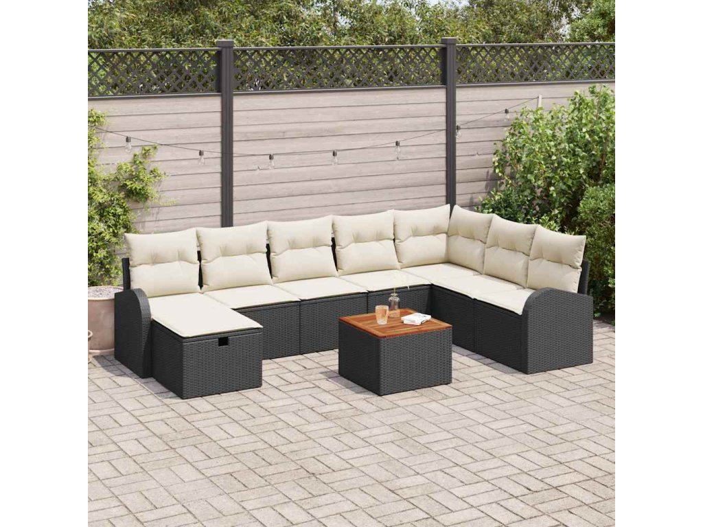 Sada zahradních pohovek s polštářem 9 pcs Černá Poly ratan
