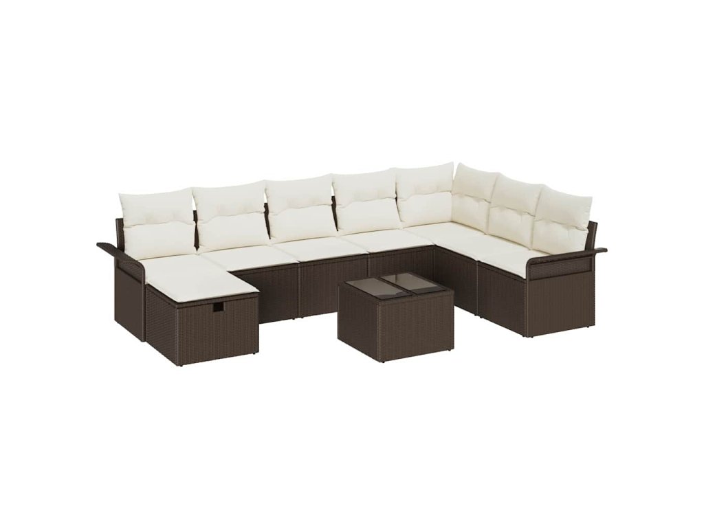 Sada zahradních pohovek s polštářem 9 pcs Hnědá Poly ratan