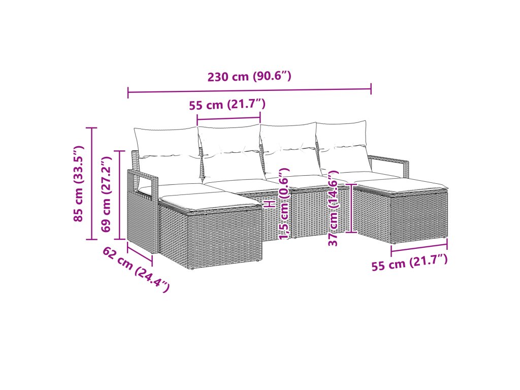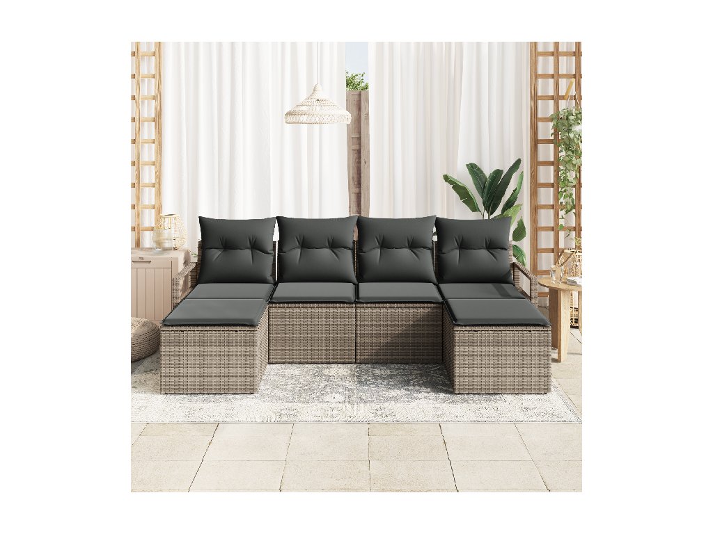Set pohovek s polštářem s úložištěm 6 pcs Šedá polyratan