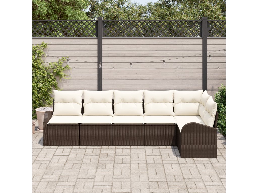 Set pohovek s polštářem 6 pcs Hnědá a bílá polyratan