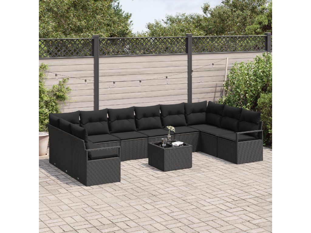 Set pohovek s polštářem s úložištěm 11 pcs Černá polyratan