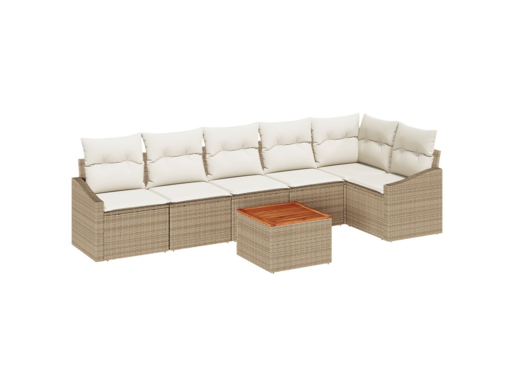 Sada zahradních pohovek s polštářem 7 pcs Béžová Poly ratan