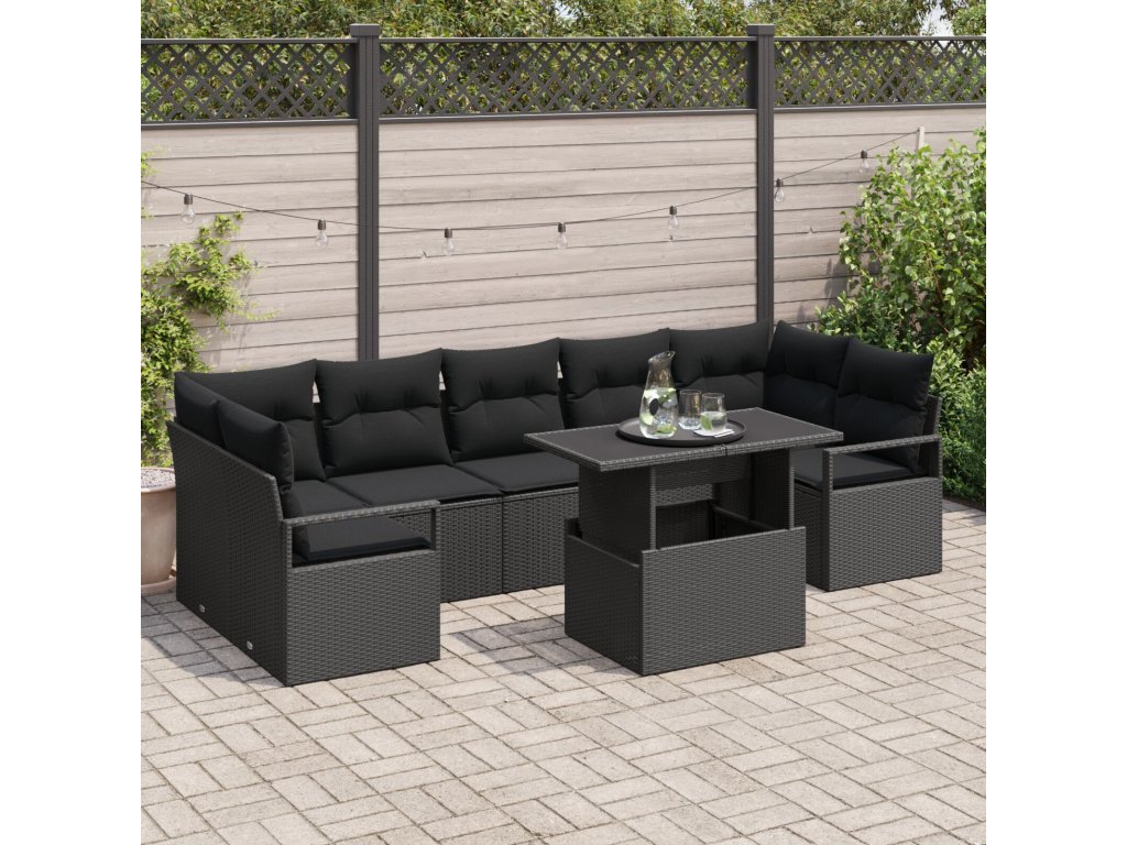 Sada zahradních pohovek s polštářem 8 pcs Černá polyratan