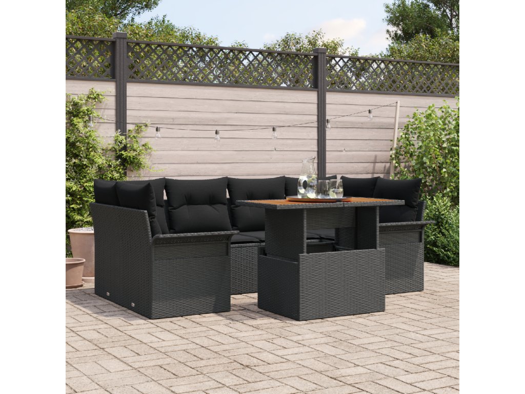 Sada zahradních pohovek s polštářem 7 pcs Černá