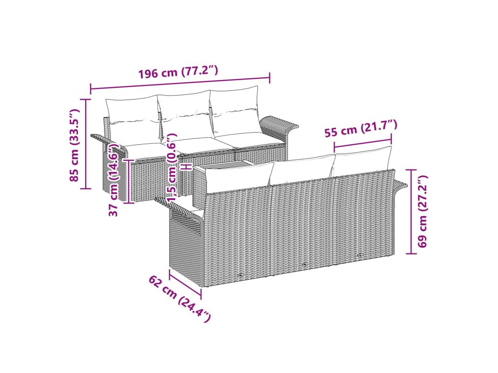 Tato zahradní nábytková sada je skvělý doplněk pro každou venkovní plochu. Má elegantní, moderní vzhled, suitable for co se skvěle hodí do zahrady, na terasu nebo balkon. S čistými liniemi a hladkými povrchy, poly ratanová konstrukce je stylová a odolná alternativa ke staromódnímu zahradnímu nábytku. Tato trendy sada tě vyzývá k relaxaci, ať už se chystáš na rodinné BBQ nebo si vychutnáváš klidnou ranní kávu. Sedení je pohodlné a skvělé pro malá i velká setkání.