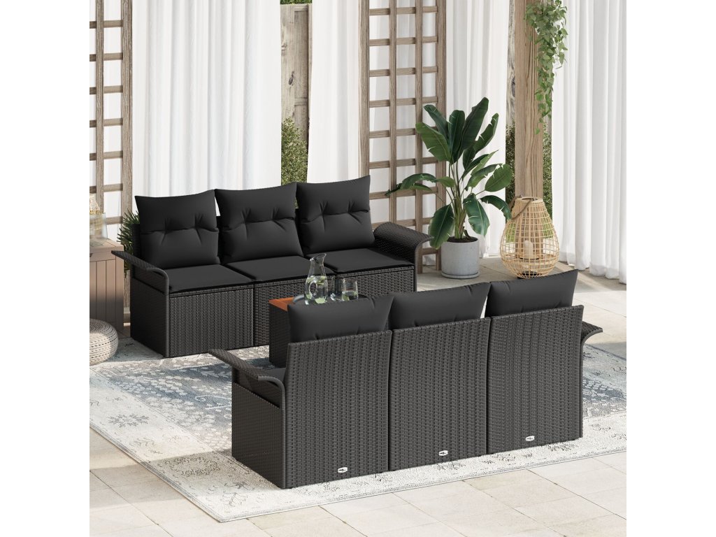 Sada zahradních pohovek 7 pcs Černá Poly ratan
