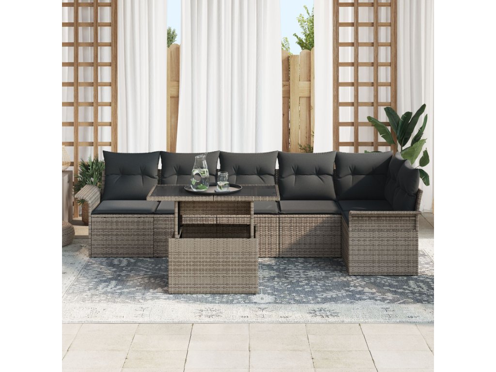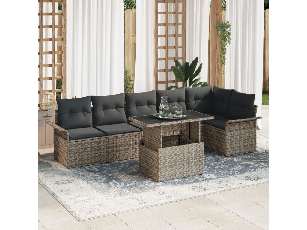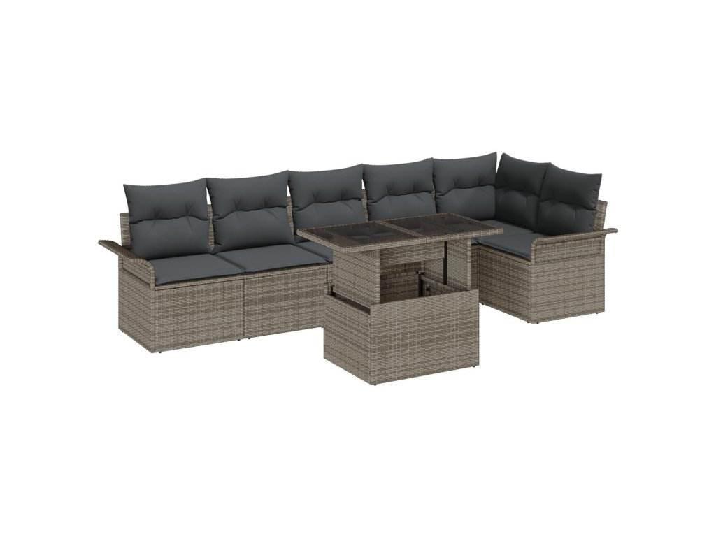 Sada zahradních pohovek s polštářem 7 pcs Šedá Poly ratan