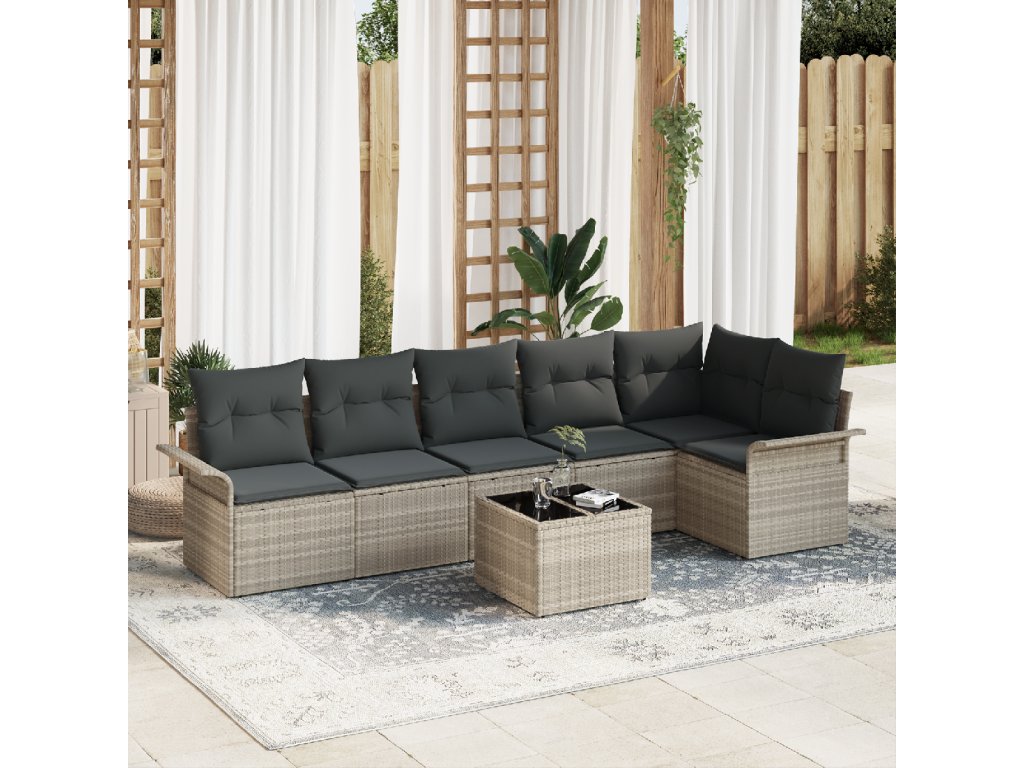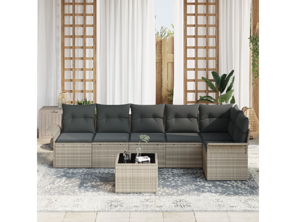 Sada zahradních pohovek s polštářem 7 pcs Světle šedá polyratan