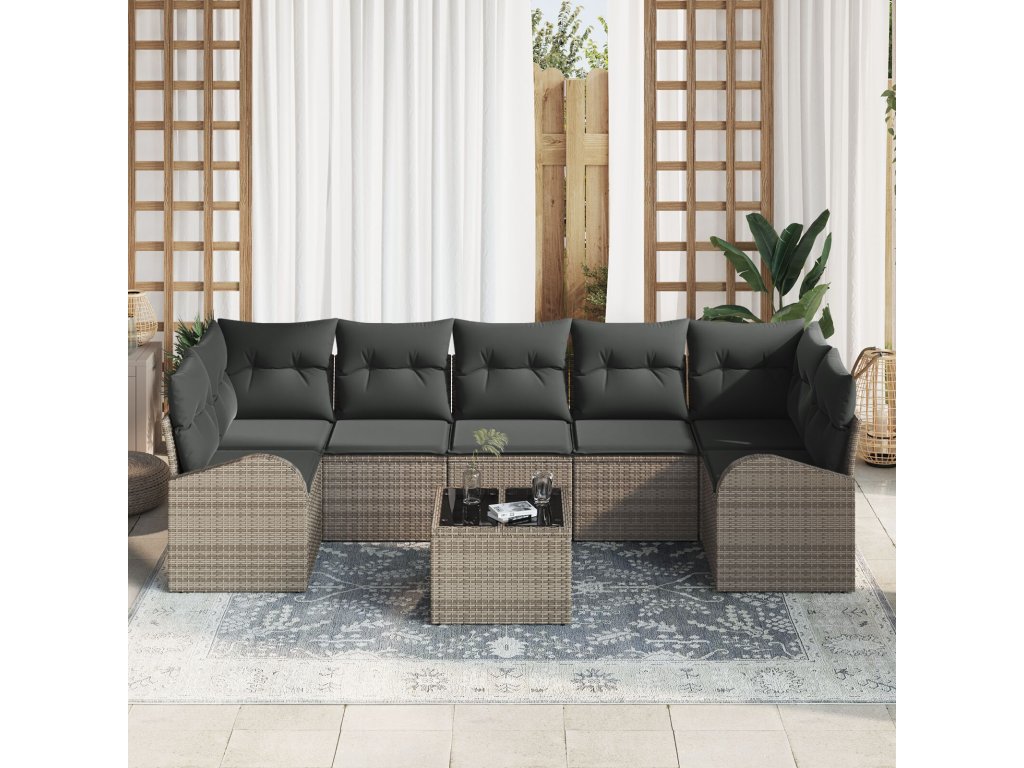 Vysoce kvalitní materiály: Tento zahradní pohovkový set z poly ratanového materiálu vypadá elegantně a je odolný. Je UV-odolný a snáší drsné venkovní podmínky. Robustní nohy z práškově potažené oceli zajišťují stabilitu pro dlouhodobé používání, takže všechno krásně ladí a vy vytvoříte funkční prostor pro venkovní lenošení. Komponenty a design: Set obsahuje dvě rohové sedačky, tři středové sedačky, dvě pohovky s opěrkami a čtvercový stůl s tvrzeným sklem. Komponenty jsou navrženy pro pohodlí a snadné přizpůsobení různým sociálním potřebám. Elegantní poly ratanové opěrky rukou a reprezentativní zadní panely dodávají designu šmrnc. Výjimečné vlastnosti: Lehký set je snadno přenosný, s modulárním designem pro různá uspořádání. Potahy s polyesterovým plněním zaručují pohodlí, zatímco stůl s tvrzeným sklem je silný a snadno se čistí. Univerzální použití: Ideální pro terasy, zahrady a balkony, tento set nabízí možnost relaxace a variabilitu pro každou příležitost. Je skvělý pro letní večírky nebo klidné večery a hodí se jak pro domovy, tak pro pohostinské prostory. Tipy na údržbu: Udržujte set v dobrém stavu otíráním vlhkým hadříkem a zakryjte ho, když není používán. Odnímatelné potahy polštářů můžete prát, což usnadňuje jejich údržbu a zajišťuje, že set bude stále vypadat stylově po celou sezónu.- Barva: Šedá