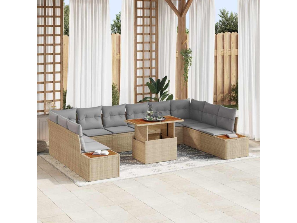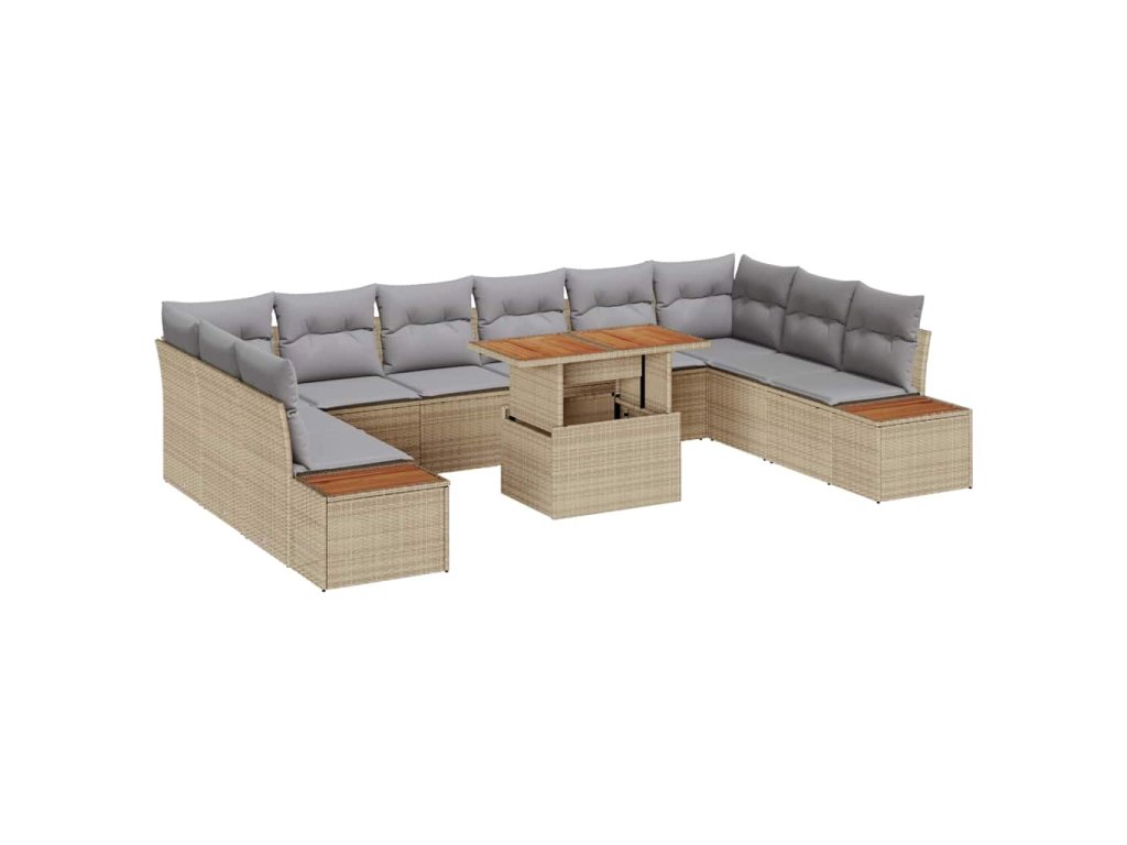 Sada zahradních pohovek s úložištěm 11 pcs Béžová Poly ratan