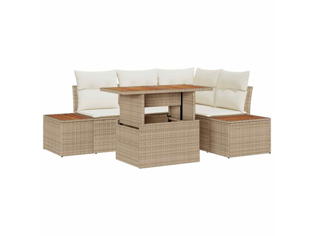 Sada zahradních pohovek s úložištěm 5 pcs Béžová Poly ratan